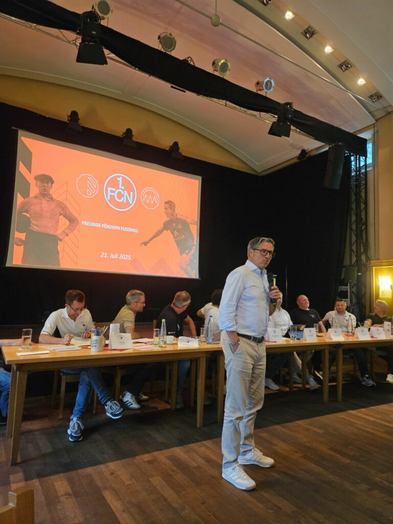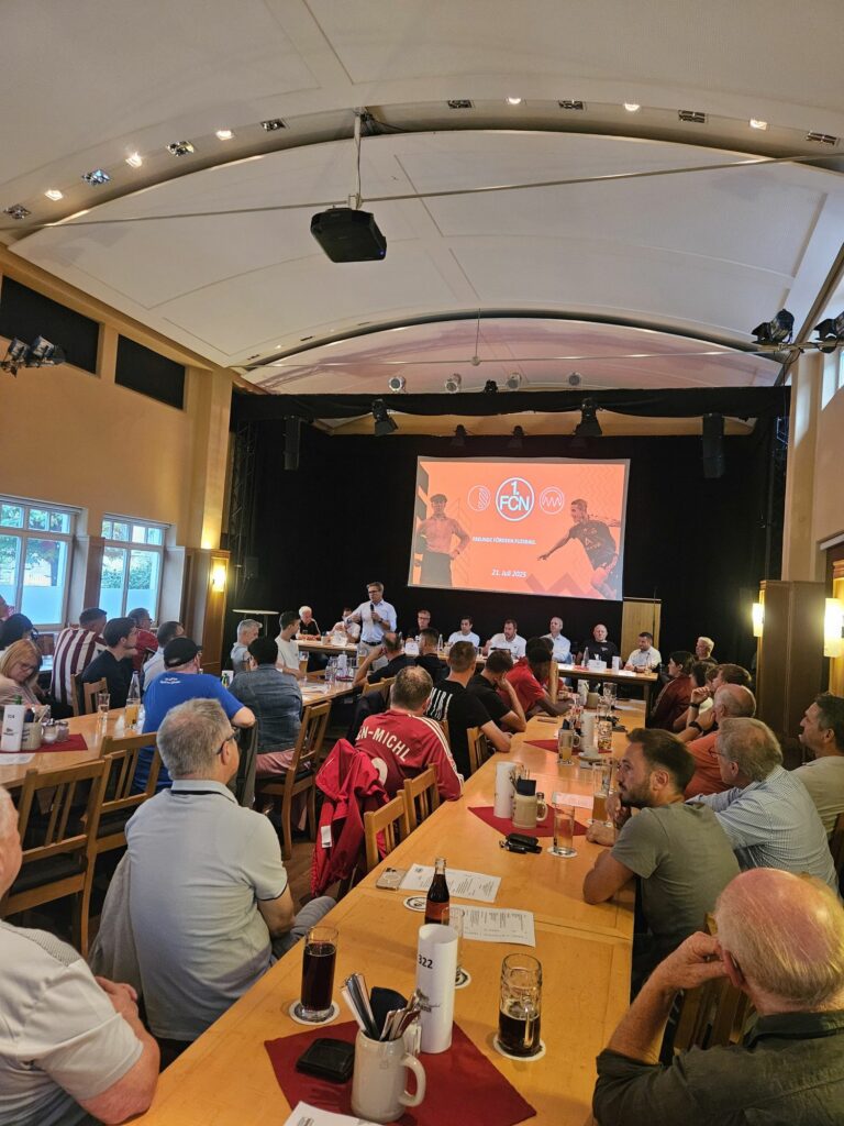 Am Montag, 21. Juli 2025, fand die Jahreshauptversammlung im GUTMANN am Dutzendteich statt. Auf der Tagesordnung standen neben den Berichten des Vorsitzenden, des Schatzmeisters und der Kassenprüfer auch wieder das Grußwort von Peter Meier (Vorsitzender des Aufsichtsrats des 1. FC Nürnberg e.V.), der die aktuellsten Themen aus dem Gremium mitgebracht hatte.